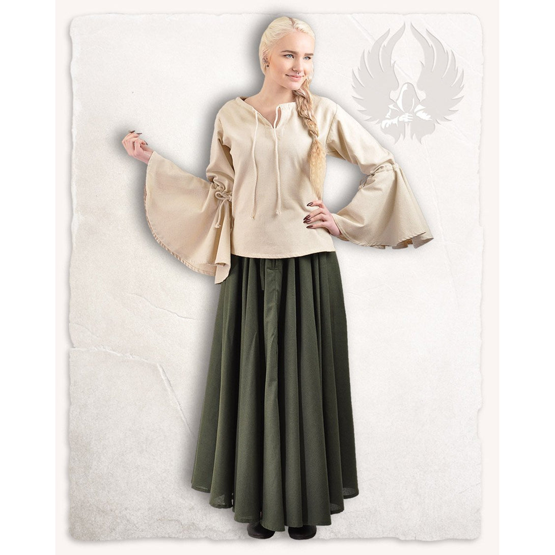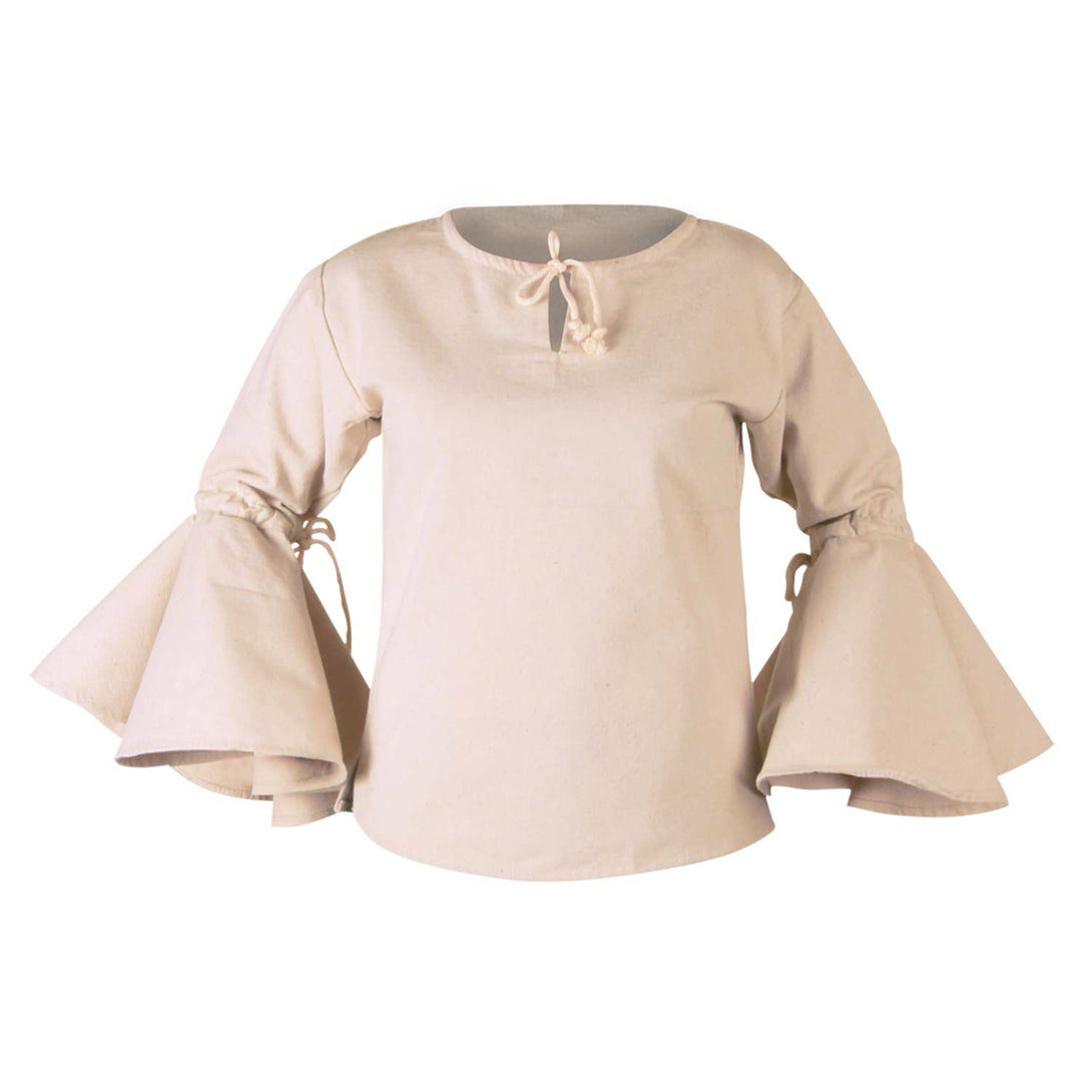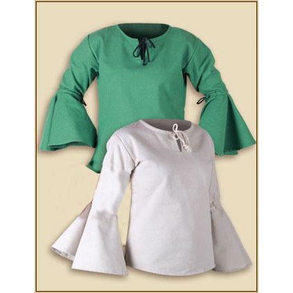 This blouse is made from cotton and has wide cuffs. It is perfect to combine with any skirts, dresses and vests. It can be closed with a string in the front....